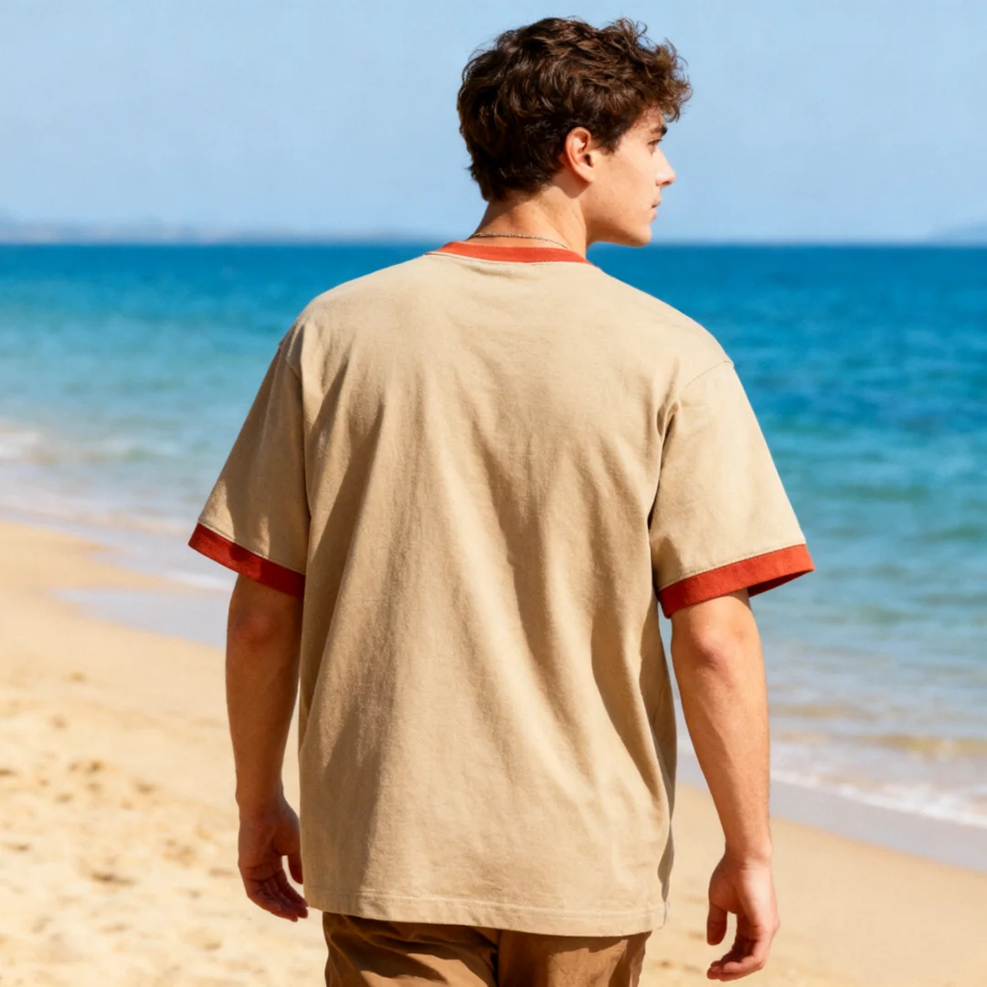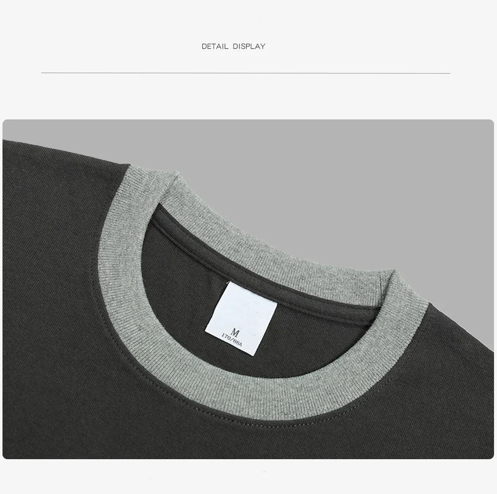 100% Heavyweight Cotton Short Sleeve Tshirt Contact Color Patchwork Crew Neck Blank T Shirts Men Tee Shirt