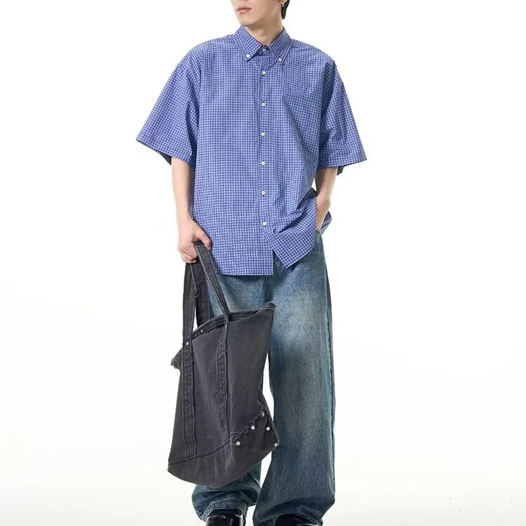 2026 Men’s Summer Retro Slim Fit Twill Shirt Button-Closing Short-Sleeved Flap Pockets Anti-Pilling Design Casual Handsome Look