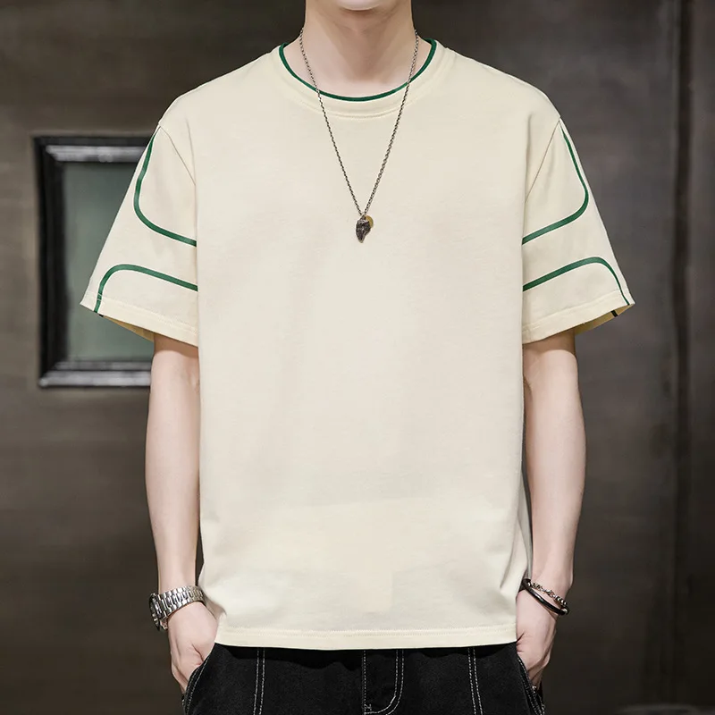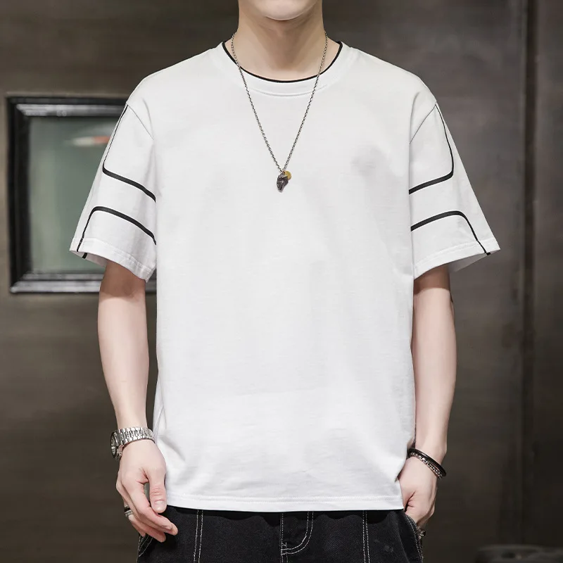 2026 Men’s Trendy Solid Pattern Short-Sleeved T-Shirt Summer Casual Breathable Cotton Bottoming Top Large Size Loose Fit