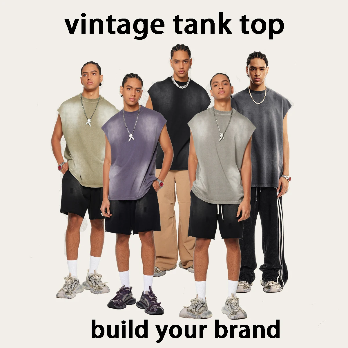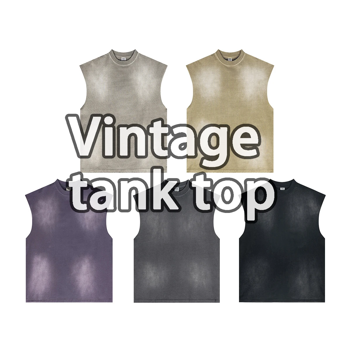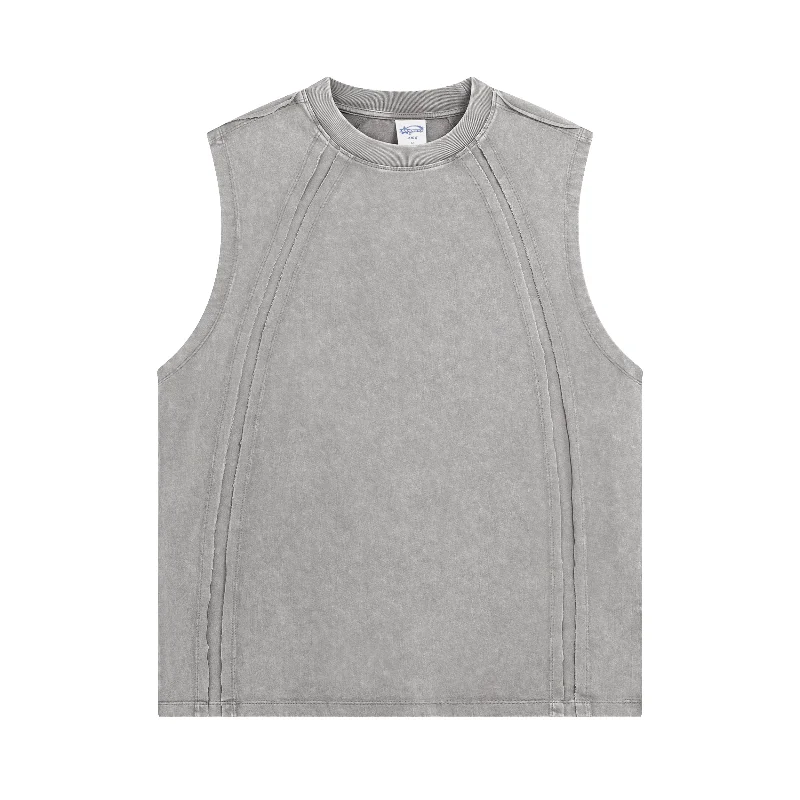 2026 Summer New Washed Retro Split Aged Vest Casual Sports Fitness Pure Cotton Sleeveless Men’s T-shirt