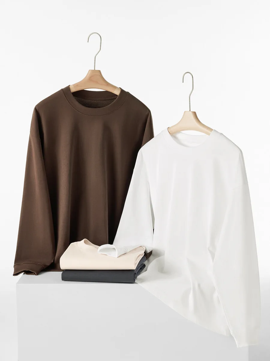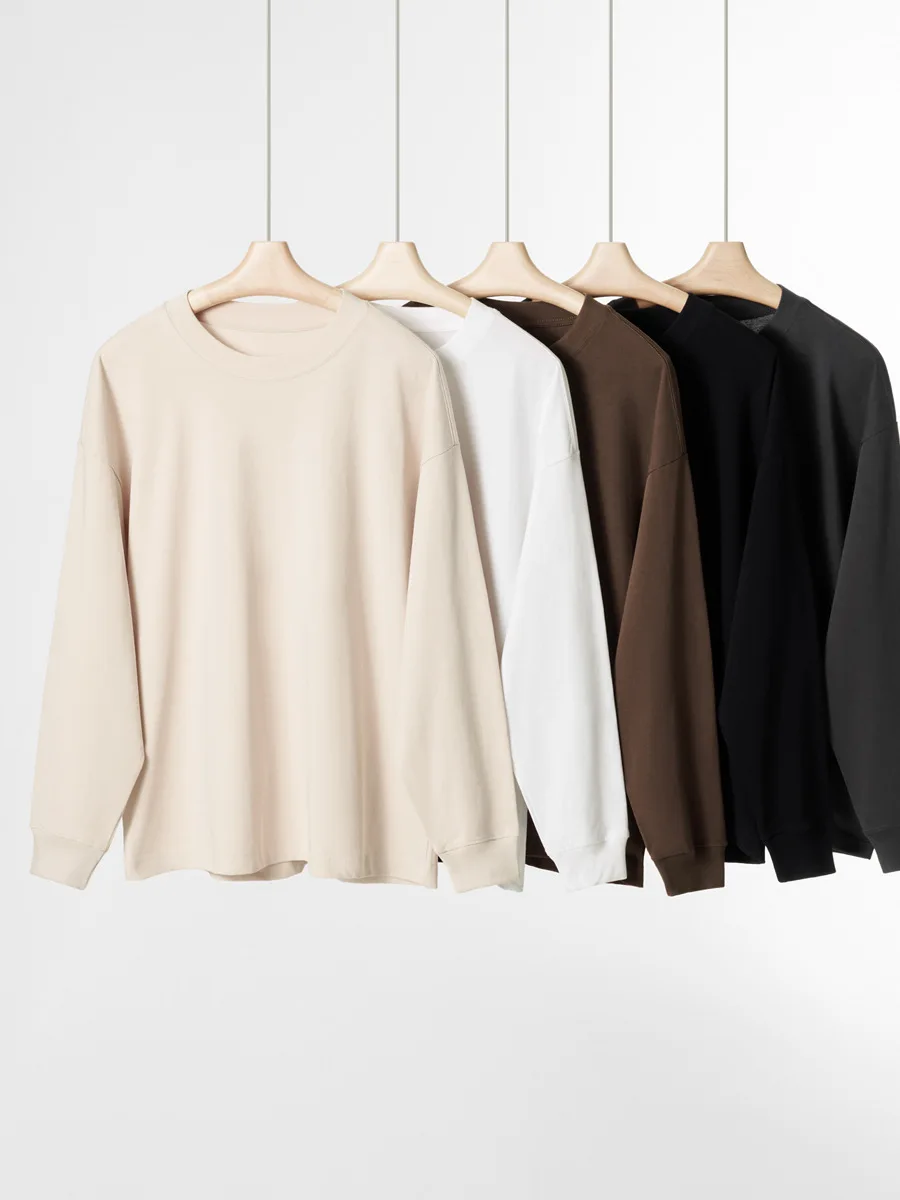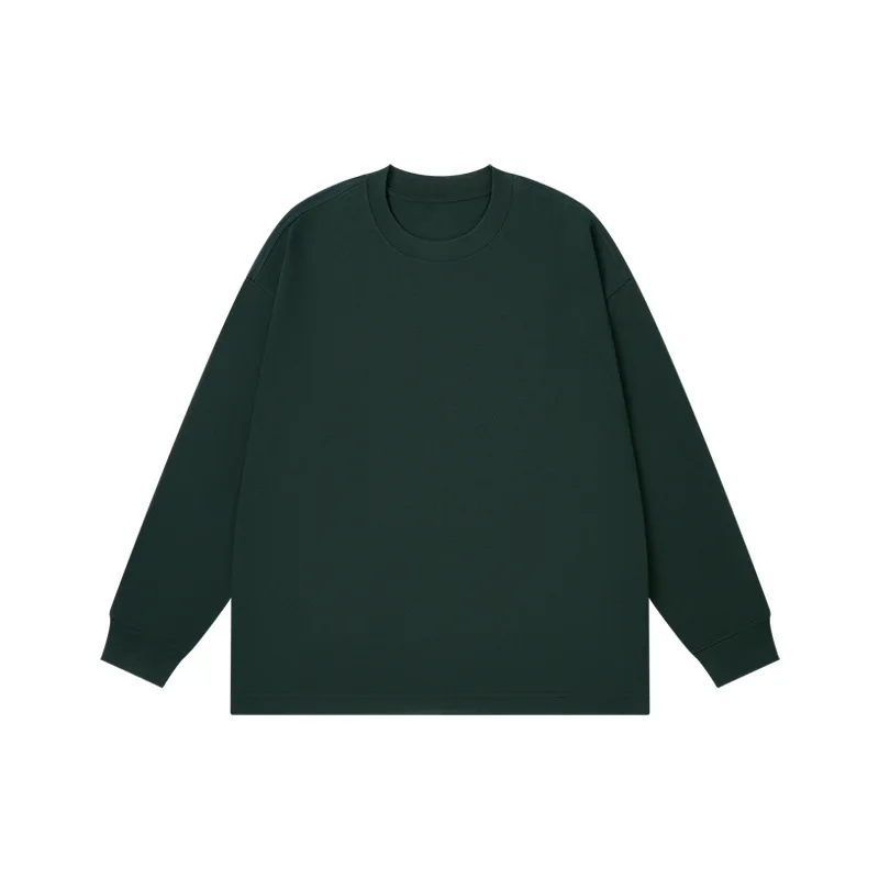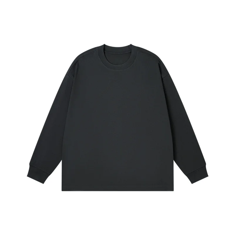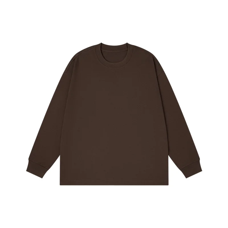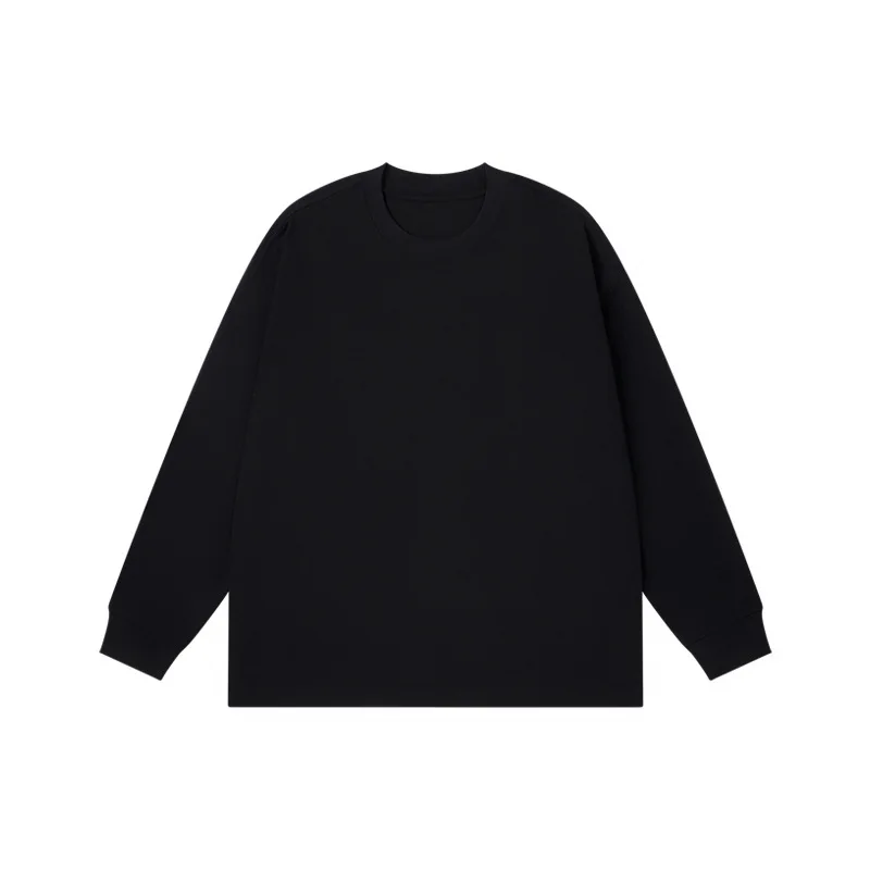300g Simple Solid Color Long Sleeved T-shirt for Men Winter Versatile Pure Cotton Men’s Base Shirt