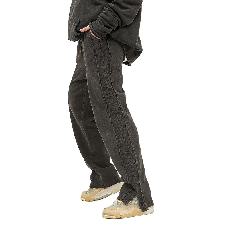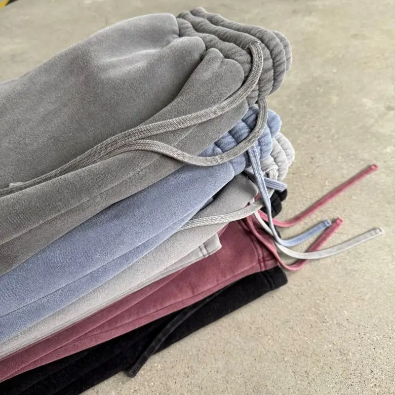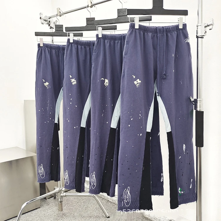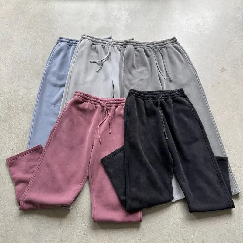 Distressed Acid Wash Fleece Printing Hip Hop Fashion Oversized Loose Vintage Street Wear Sweatpants Mens