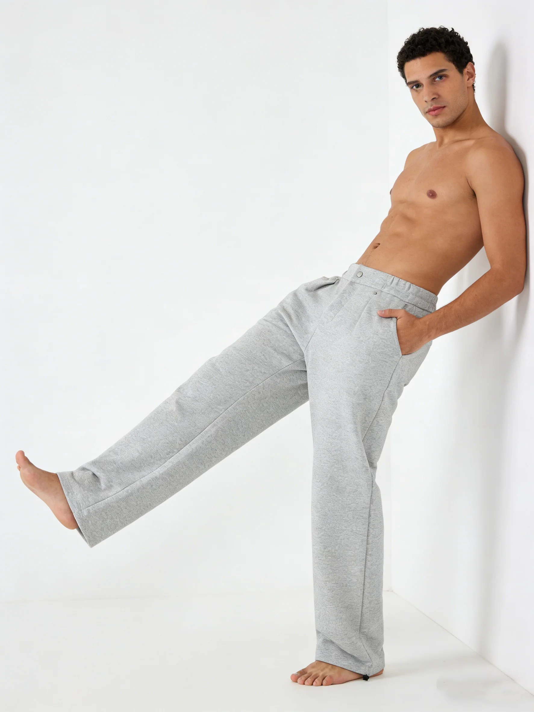 Fall Winter Men’s Elastic Waist Loose Wide-Leg & Straight-Leg Fleece Casual Sports Pants