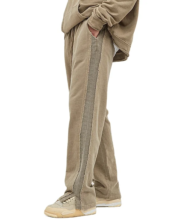 High Quality Slit Track Pants Vintage Streetwear French Terry Man Joggers Stacked Jogging Pants Men’s Sweatpants
