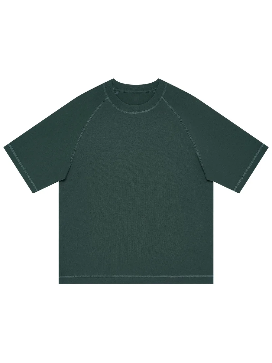 Japanese Retro 300g Heavy Cotton Raglan Half Sleeve T-Shirt for Men and Youth O-Neck Collar With Blank Design for Gym Use