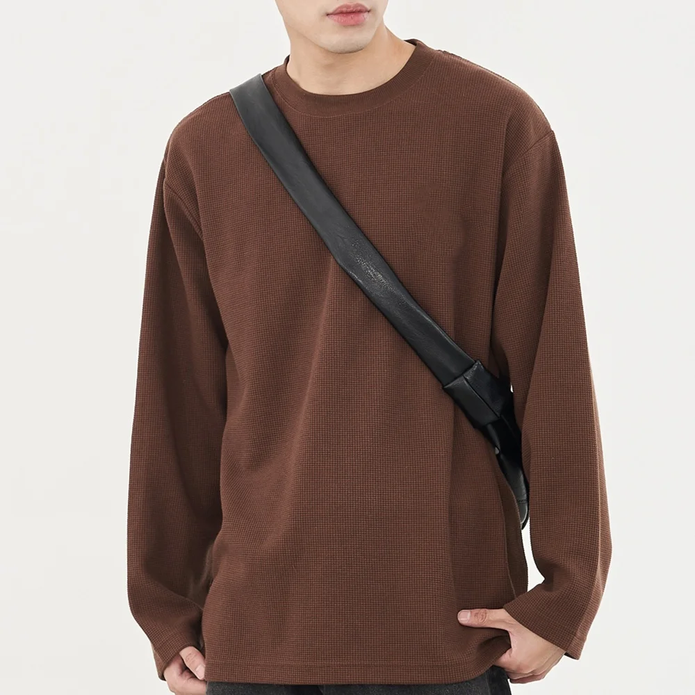 Long Sleeved T-shirt for Men 2026 New Solid Color Round Neck Top withPrinted As Base Shirt