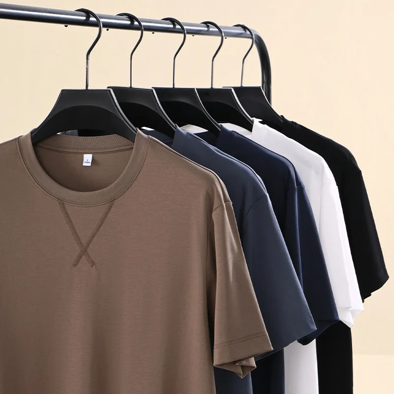 Men’s Trendy Solid Color Short-Sleeved T-Shirt Casual Youth Top with Slight Width Comfortable 180 Gram Fabric Loose Fit