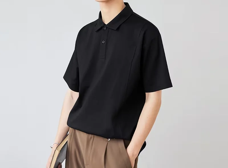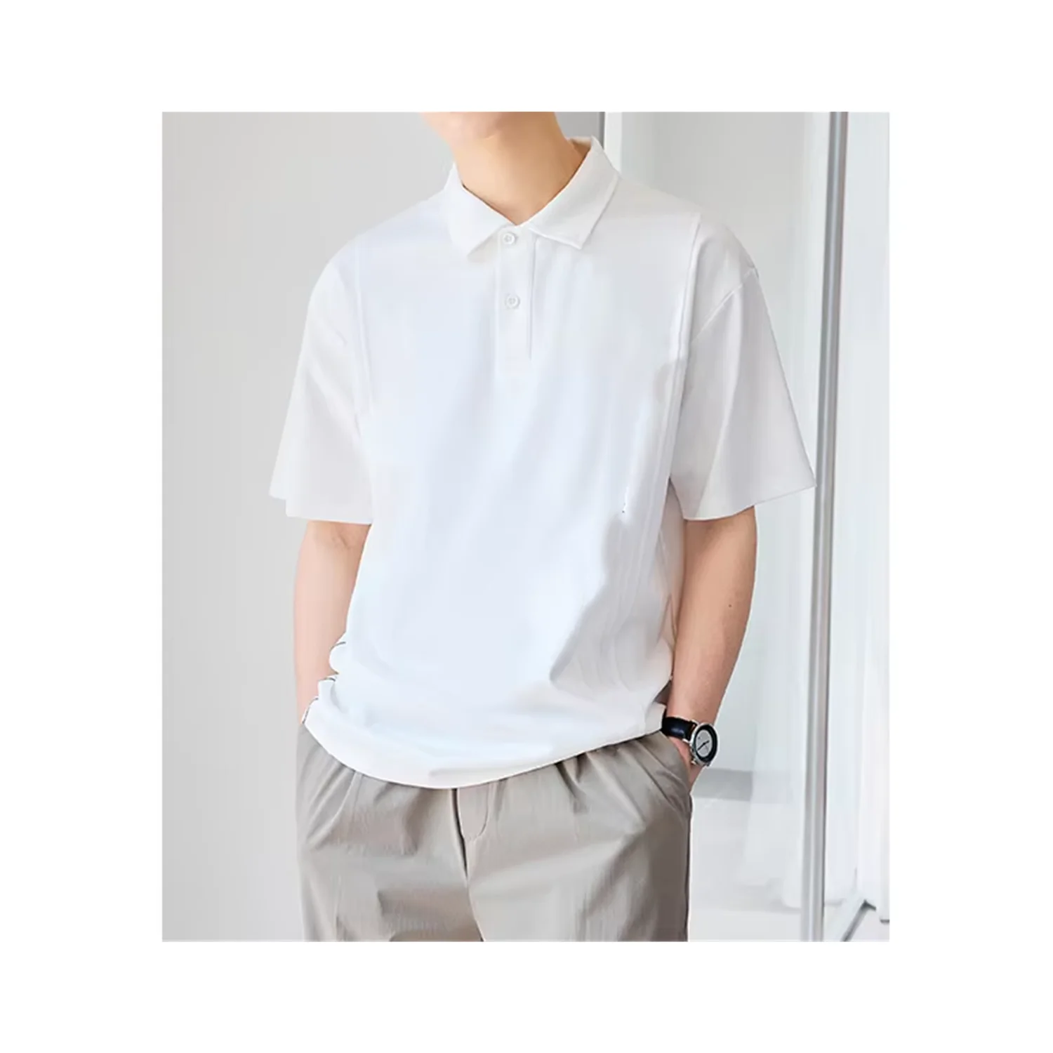 New Men’s White for Polo Shirt Turn-Down Collar Short Sleeves Embroidered Solid Business Casual Loose Fit Korean Style