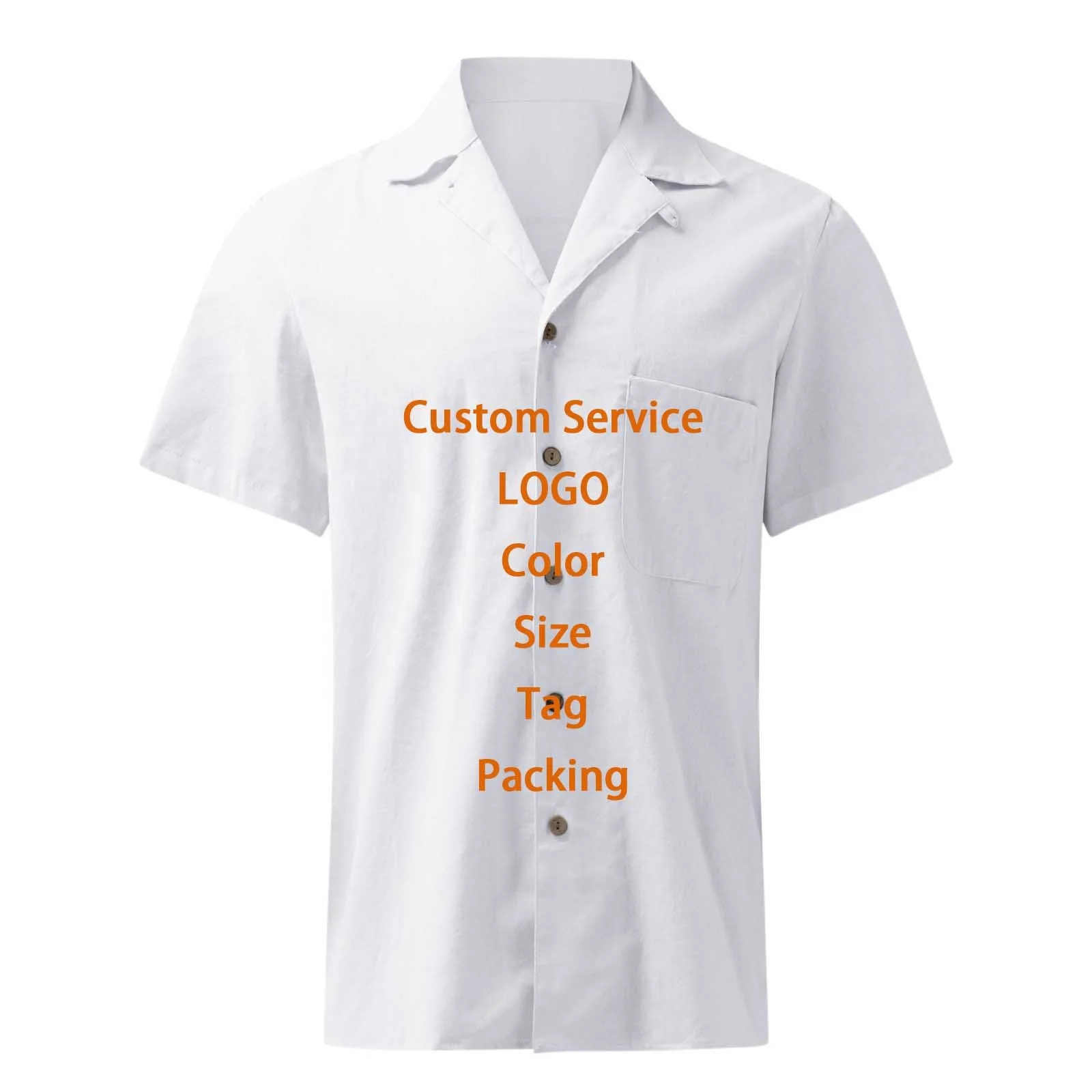 OEM 2022 Solid Color Cotton and Linen Breathable Short Sleeve Men’s Shirts With Pockets Casual Summer Tops