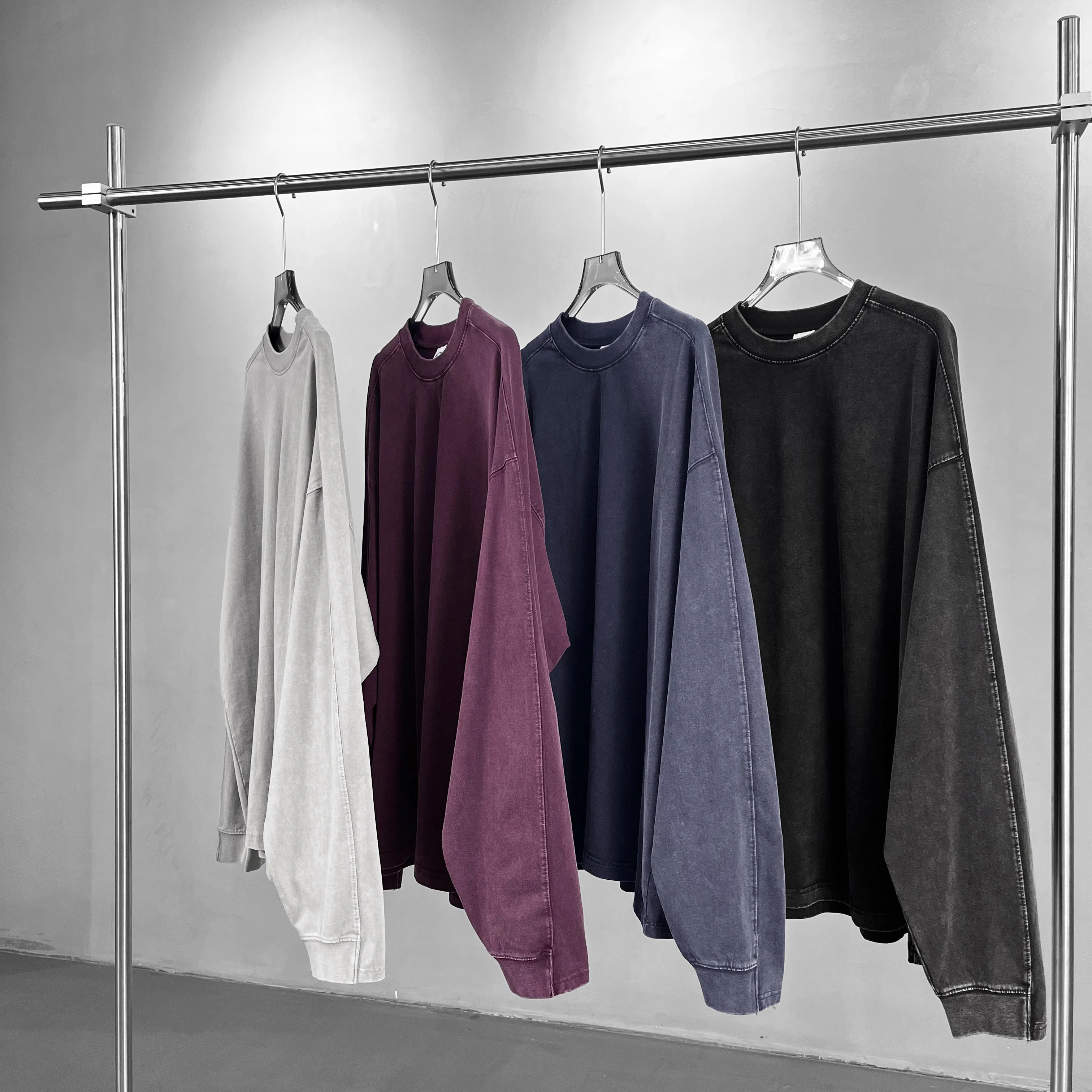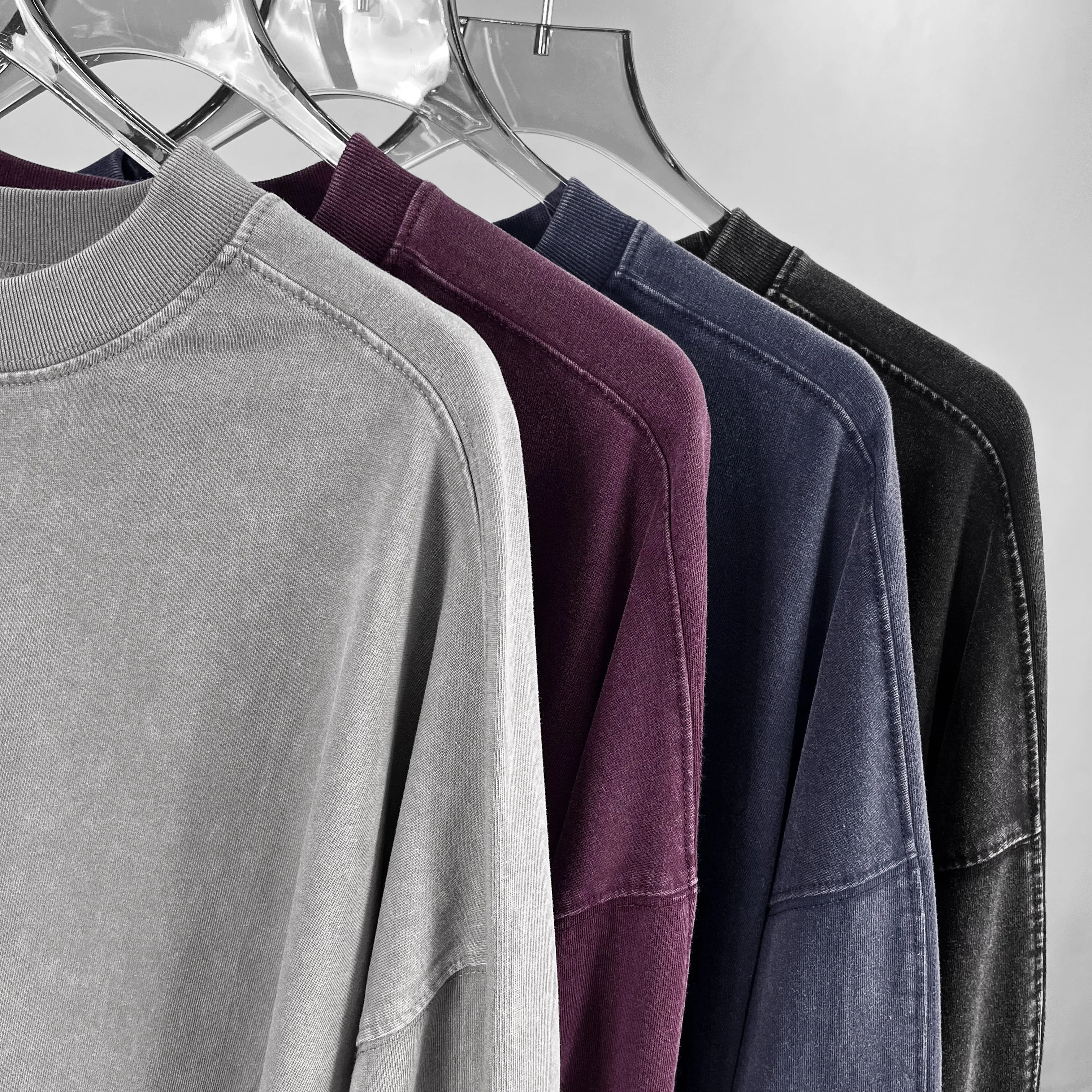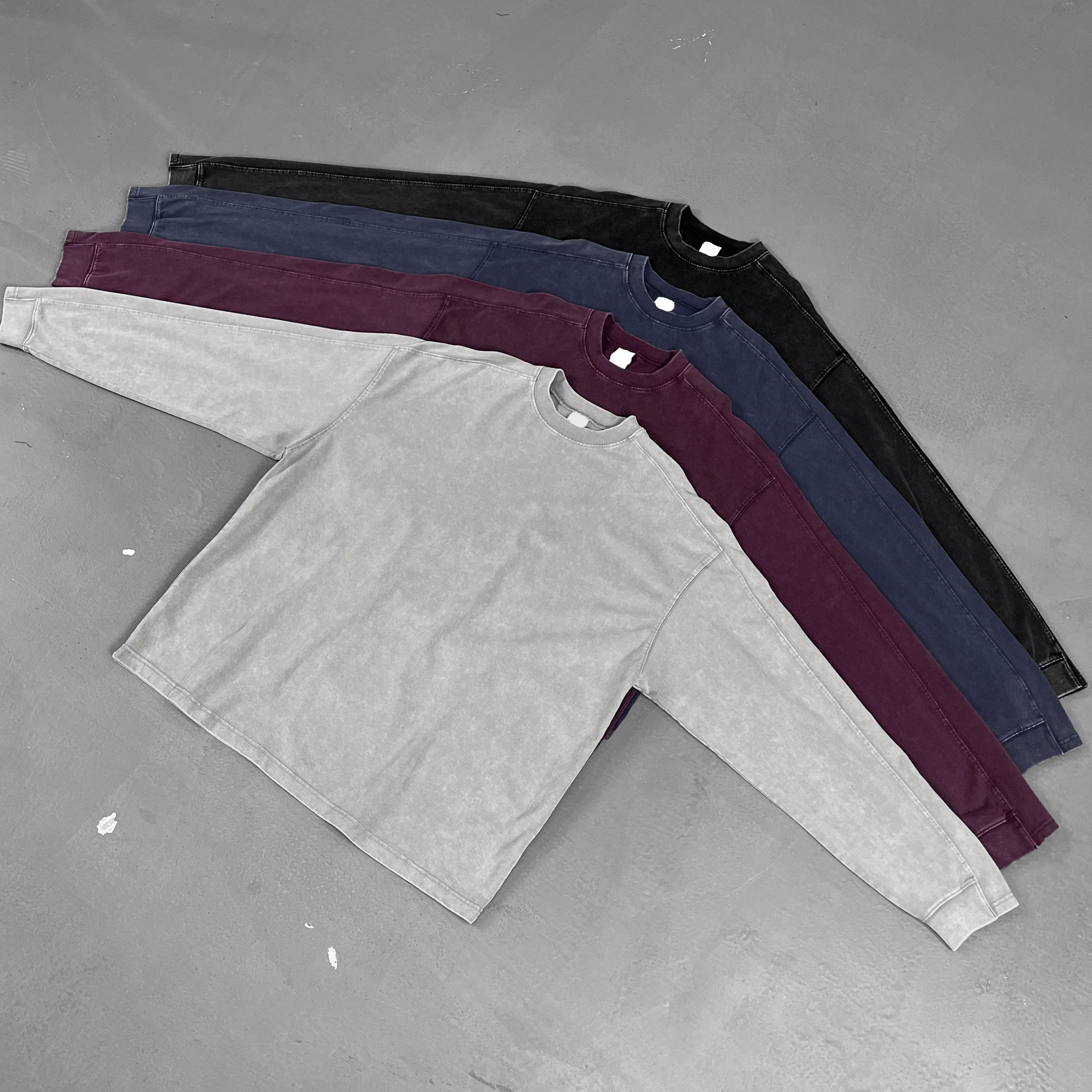 OEM Mens Cotton Long Sleeve T Shirt High Quality Embroidery Drop Shoulder Washed Long Sleeve T-Shirt
