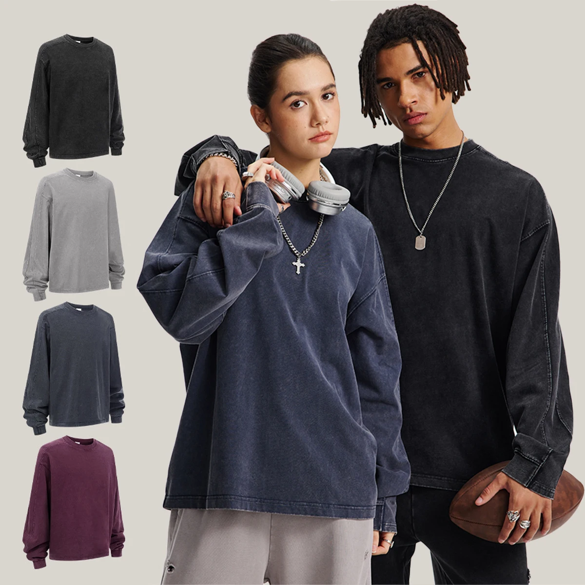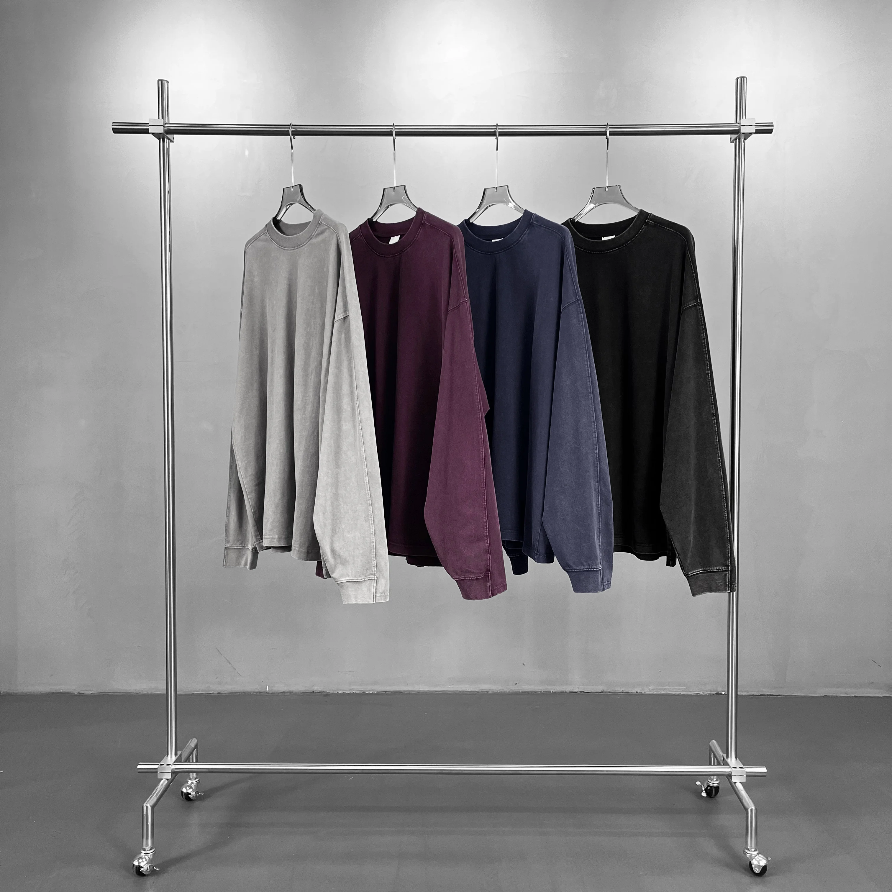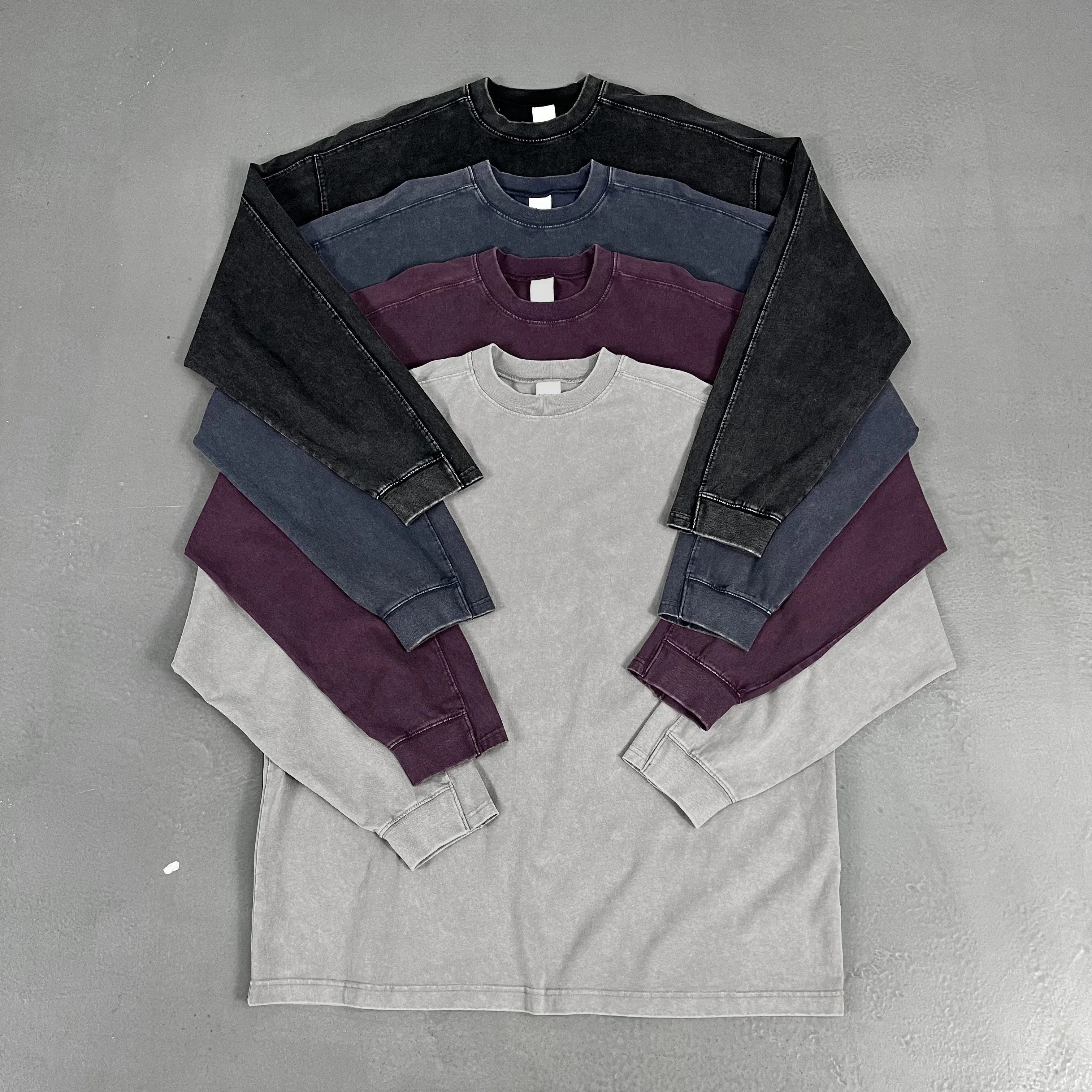OEM Mens Cotton Long Sleeve T Shirt High Quality Embroidery Drop Shoulder Washed Long Sleeve T-Shirt