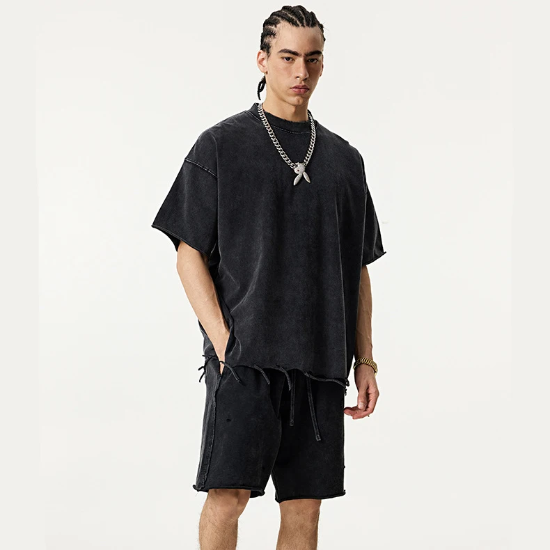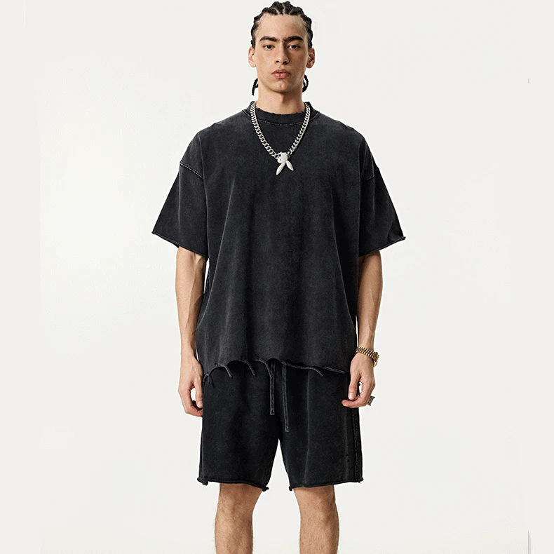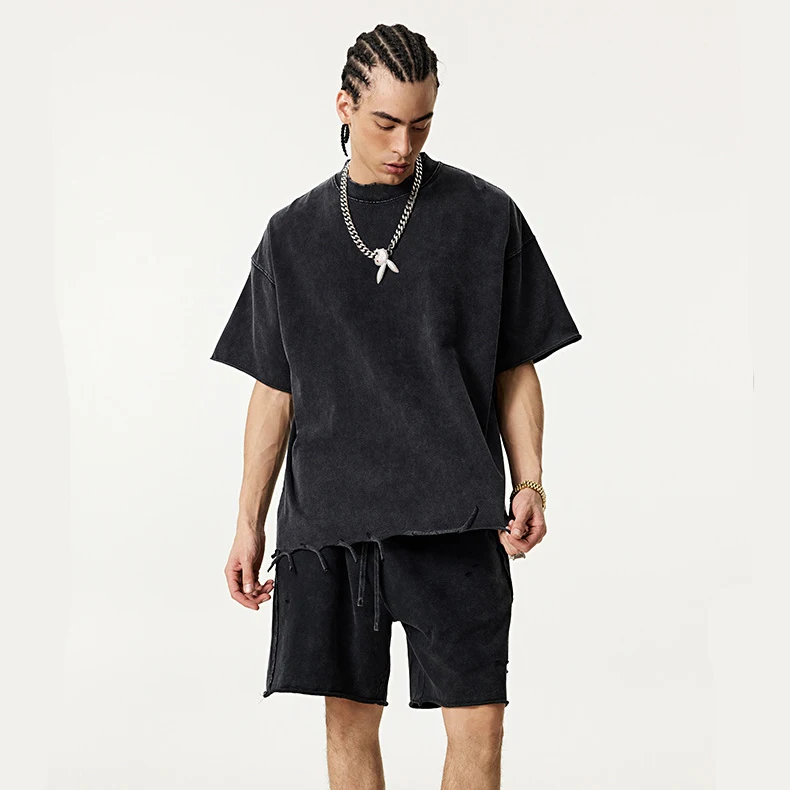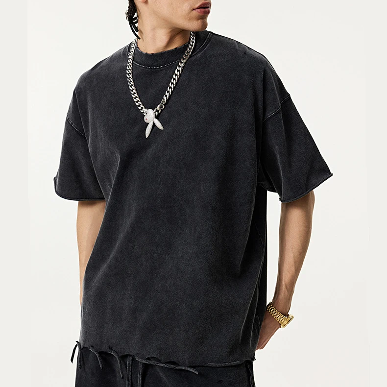 OEM Streetwear High Neck T Shirt Best Quality 300 Gsm Heavy Weight Shirt Soft Combed Cotton Embroidery Dtg Print T Shirt