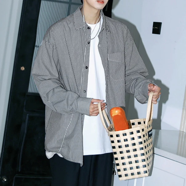 OEM Striped Shirt Men’s Long-sleeved Casual Top Men’s Spring and Autumn Loose Button up Shirt