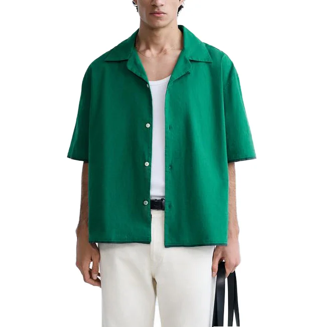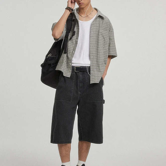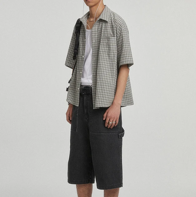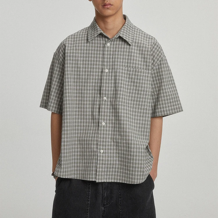 OEM Summer Boxy Design Oversize Print Men’s Cropped Check Short Sleeve Shirts Casual Button up Shirt for Men