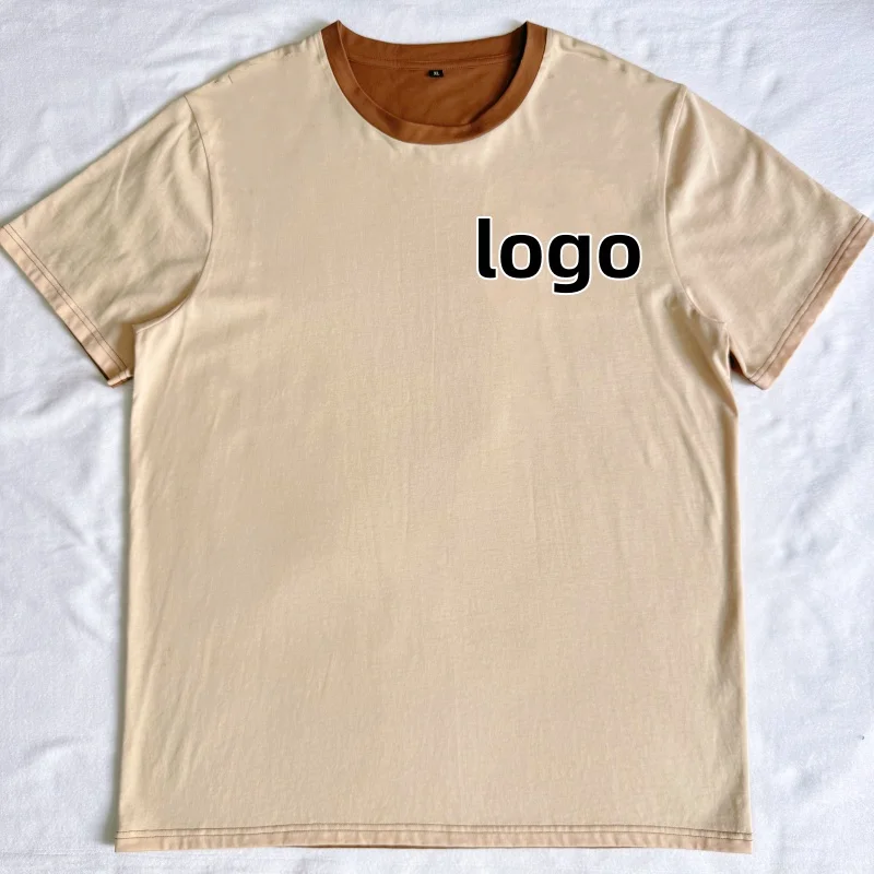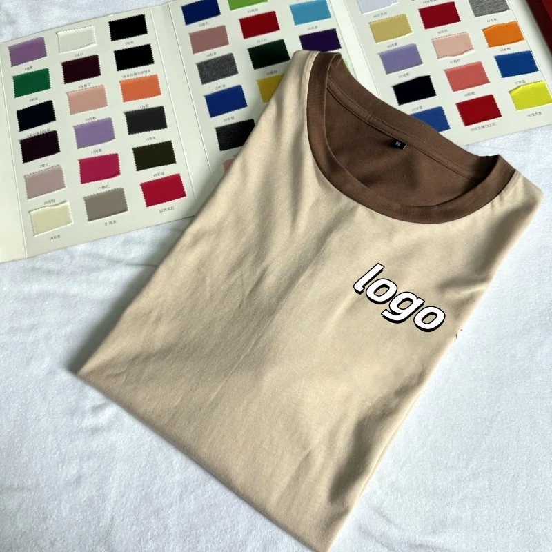Summer 230-gram Heavy Pure Cotton Short-sleeved T-shirt for Men with a Round Neck and Loose Solid-color Base Layer