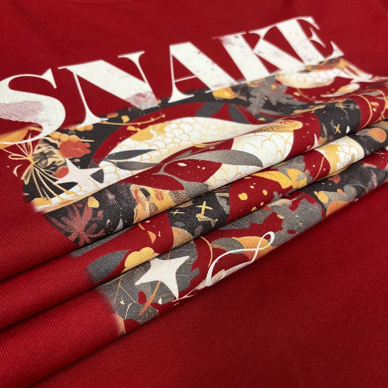 Summer Fashion 3D Printed Year Snake Red T-Shirt Heavy Lucky Oversized Casual High Quality Puff Technics Short Long Options
