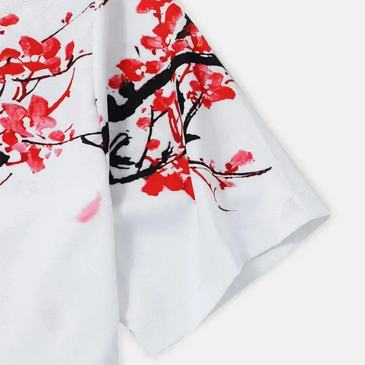 Summer Men's Lapel Ink plum Print Button Men's Shirt