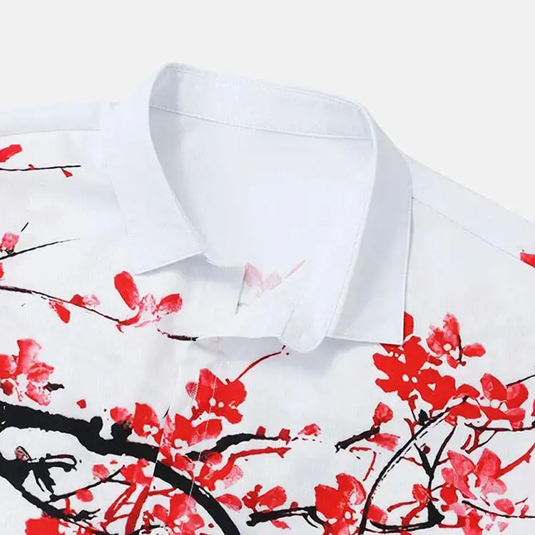 Summer Men’s Lapel Ink plum Print Button Men’s Shirt