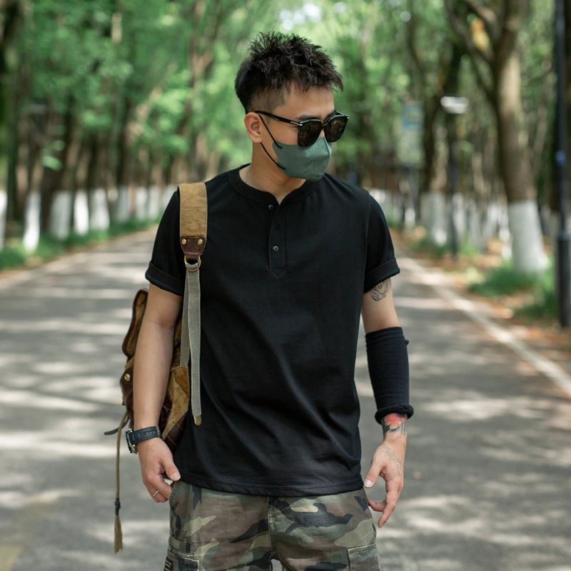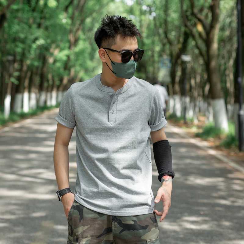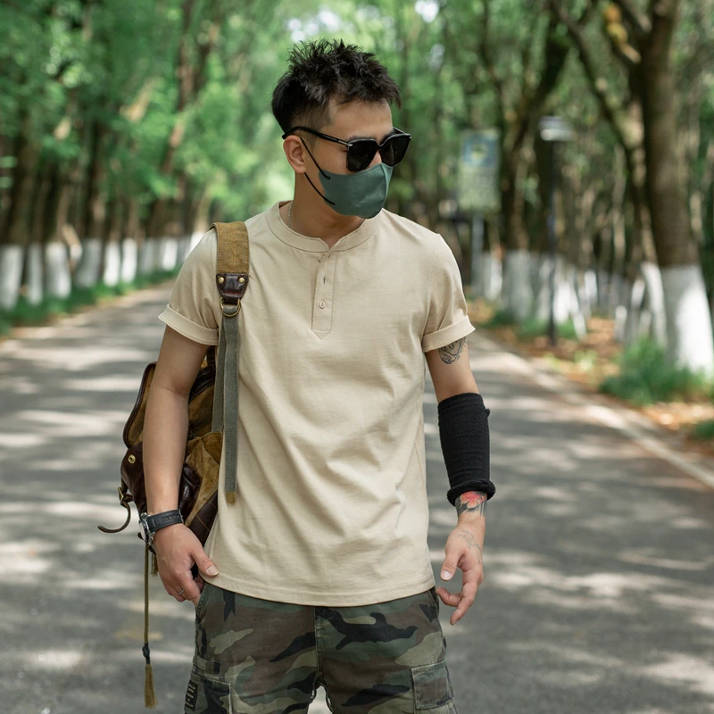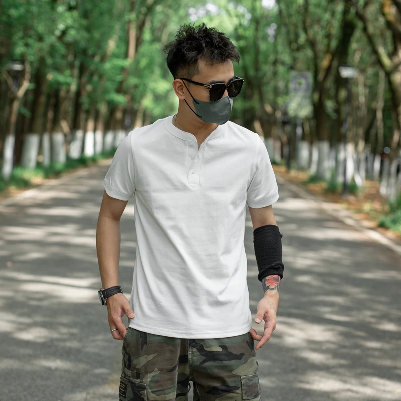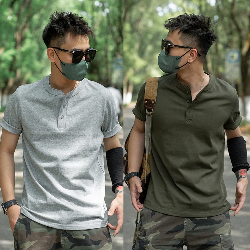 Summer Solid Men’s Short Sleeve T-Shirt American Retro 260g Combed Cotton Casual