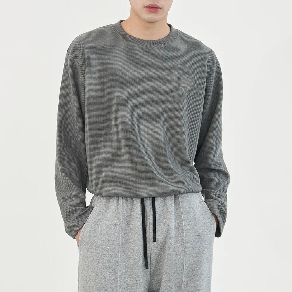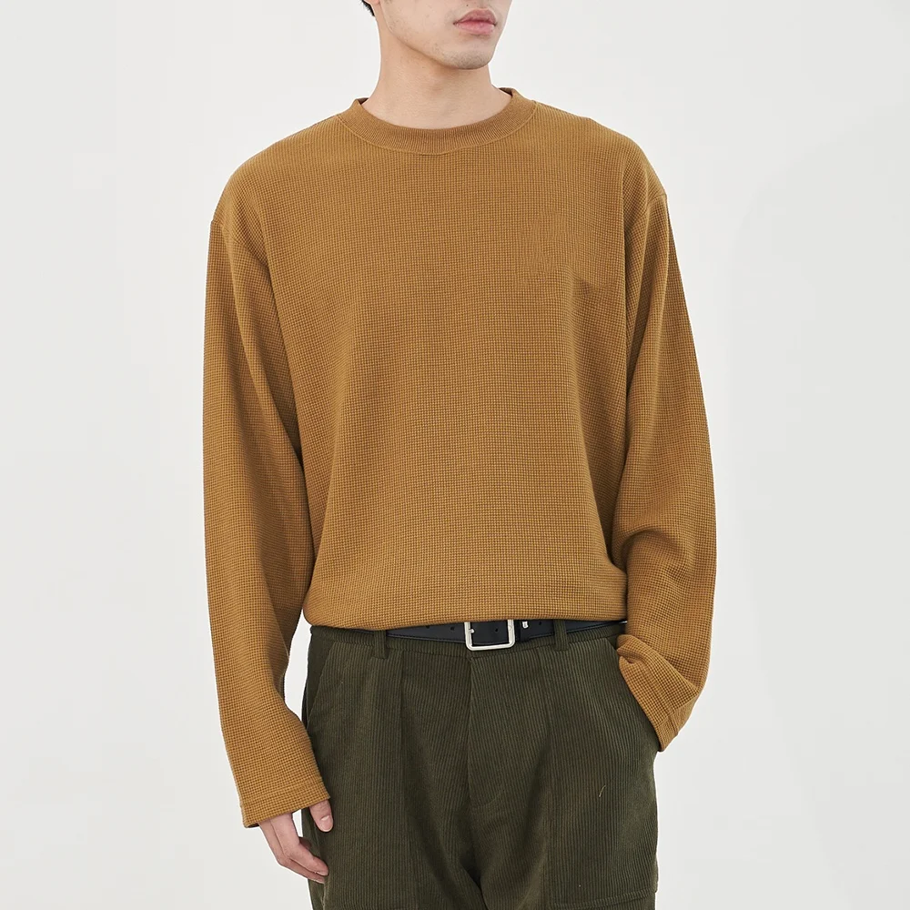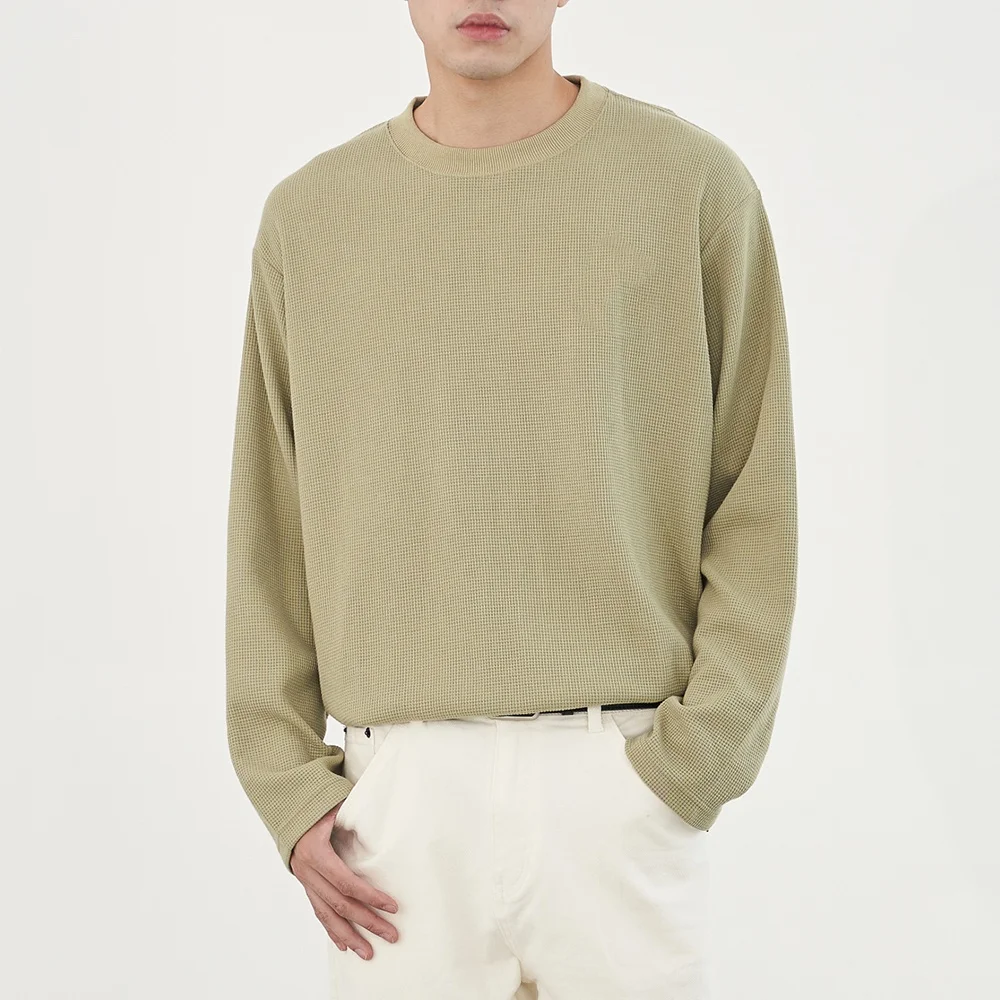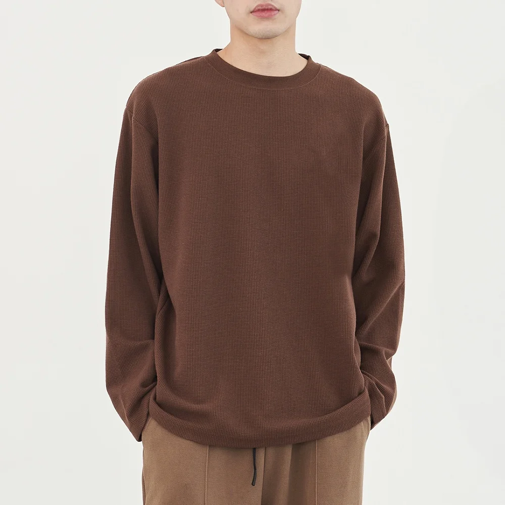 Waffle Knit Long Sleeve Men Thermal T Shirts Cotton Blend Soft Blank Solid Men oversized T-Shirt