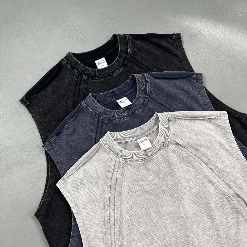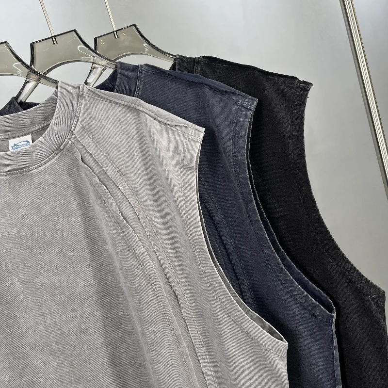 Washed and Aged 275G Batik Retro Patchwork Loose Edge Personalized Vest, European and American Trendy Brand Waistcoat
